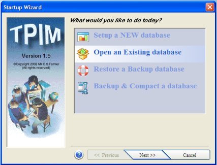 This is the opening screen which allows you to set up a new personal database for the academic year. This screen will appear every time the application starts unless you specify a default database to be opened in TPIM settings. You can also open a different database from this screen, backup and compact a database or restore a backup should the current database become corrupted. TPIM can be set to backup your database every time you exit the program and it saves the last 5 backups. To see the steps involved in creating a new database click on the links to the left.